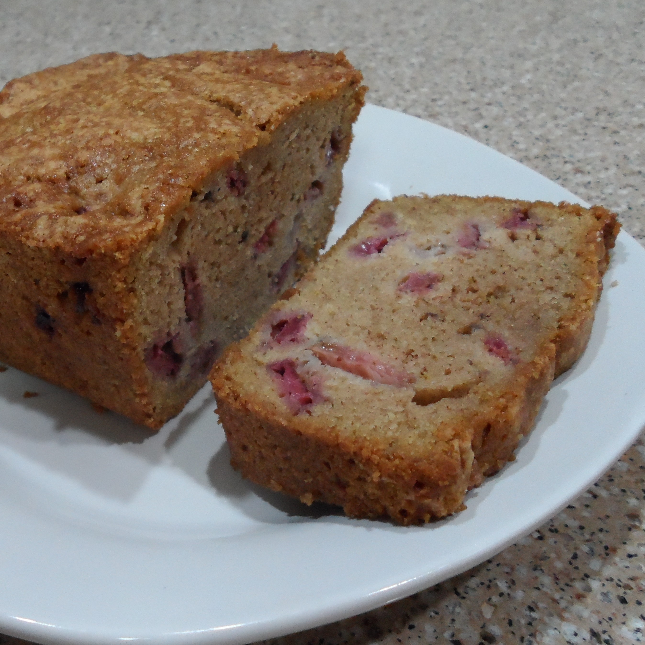 This moist and flavorful snack bread makes a great cream cheese breakfast sandwich. When strawberries are in season bake up a couple loaves and stash them in your freezer.
