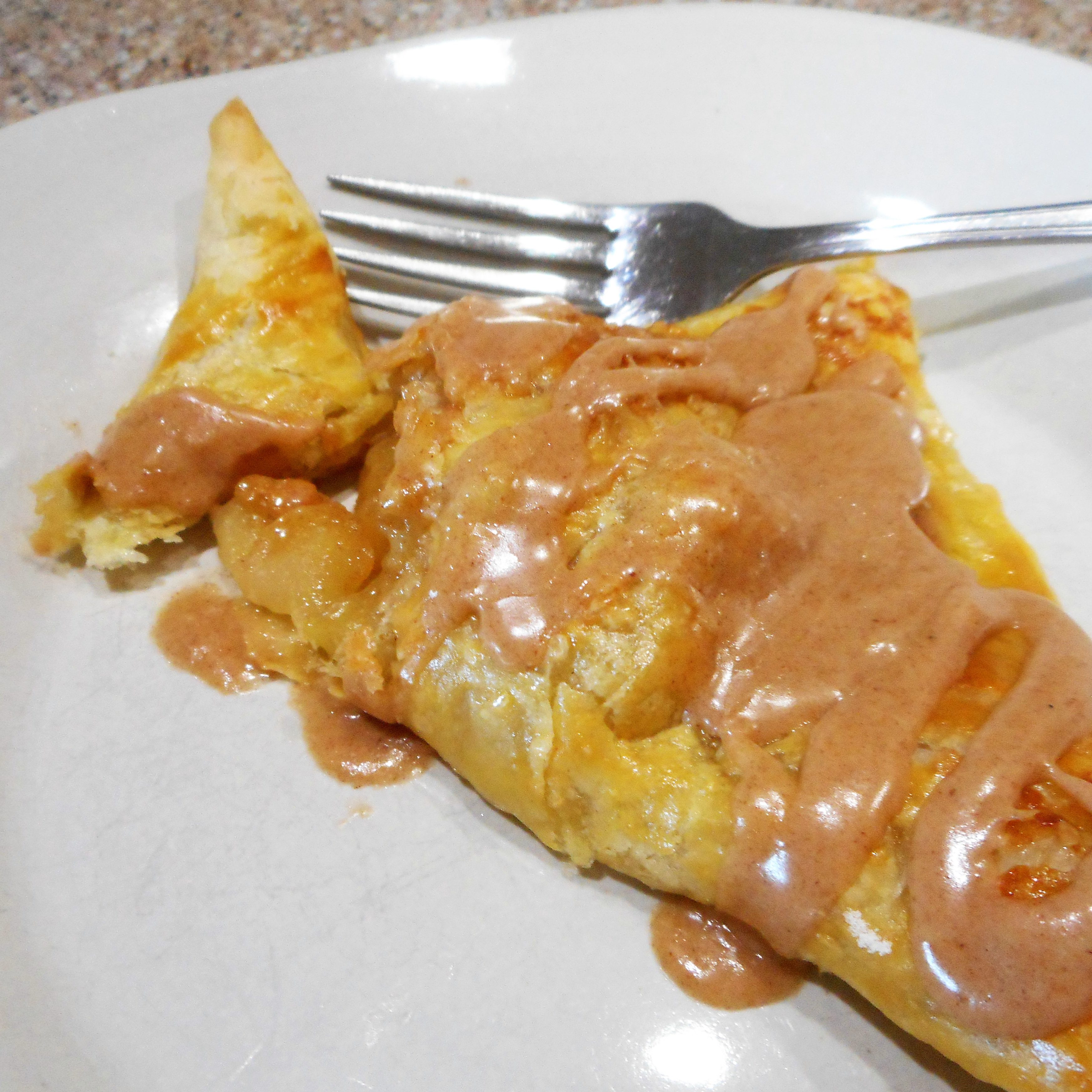 9. Drizzle the tops of the turnovers with the icing when they are no longer hot, but just warm, and serve.