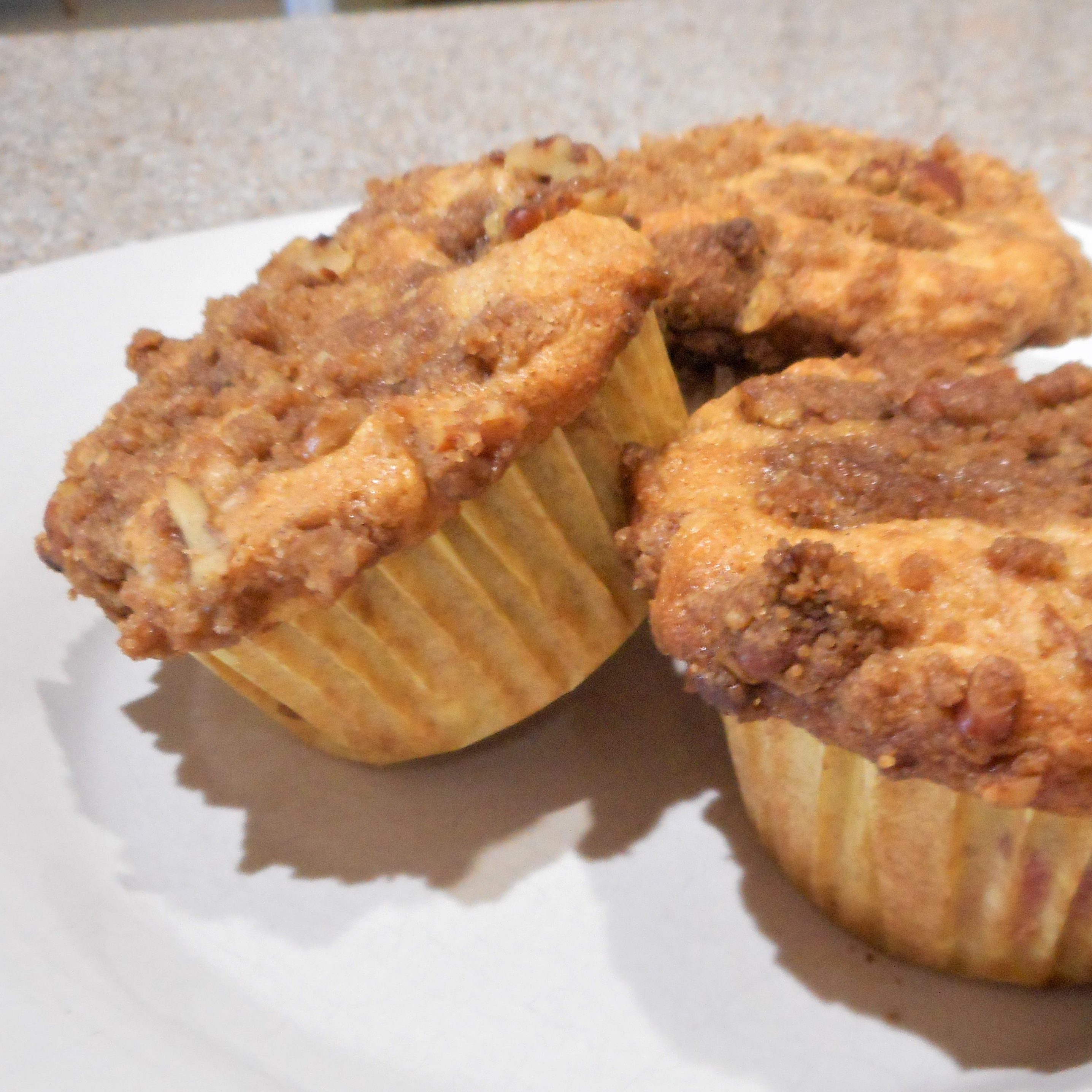 3. Place paper baking cups in a12-cup muffin pan, and spoon batter into the cups, filling two-thirds full. Sprinkle evenly with pecan streusel.