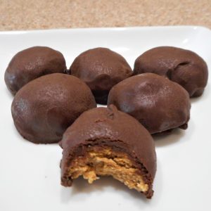 4. Melt the chocolate in the microwave until completely smooth. Use 1 cup if you want chocolate covered truffles and use 1/2 cup if you want just a chocolate drizzle on top. If dipping, use a fork dip the almond butter balls into the chocolate and return them to the baking sheet. If drizzling, use a fork to drizzle the melted chocolate over the balls. Sprinkle with sea salt if desired.