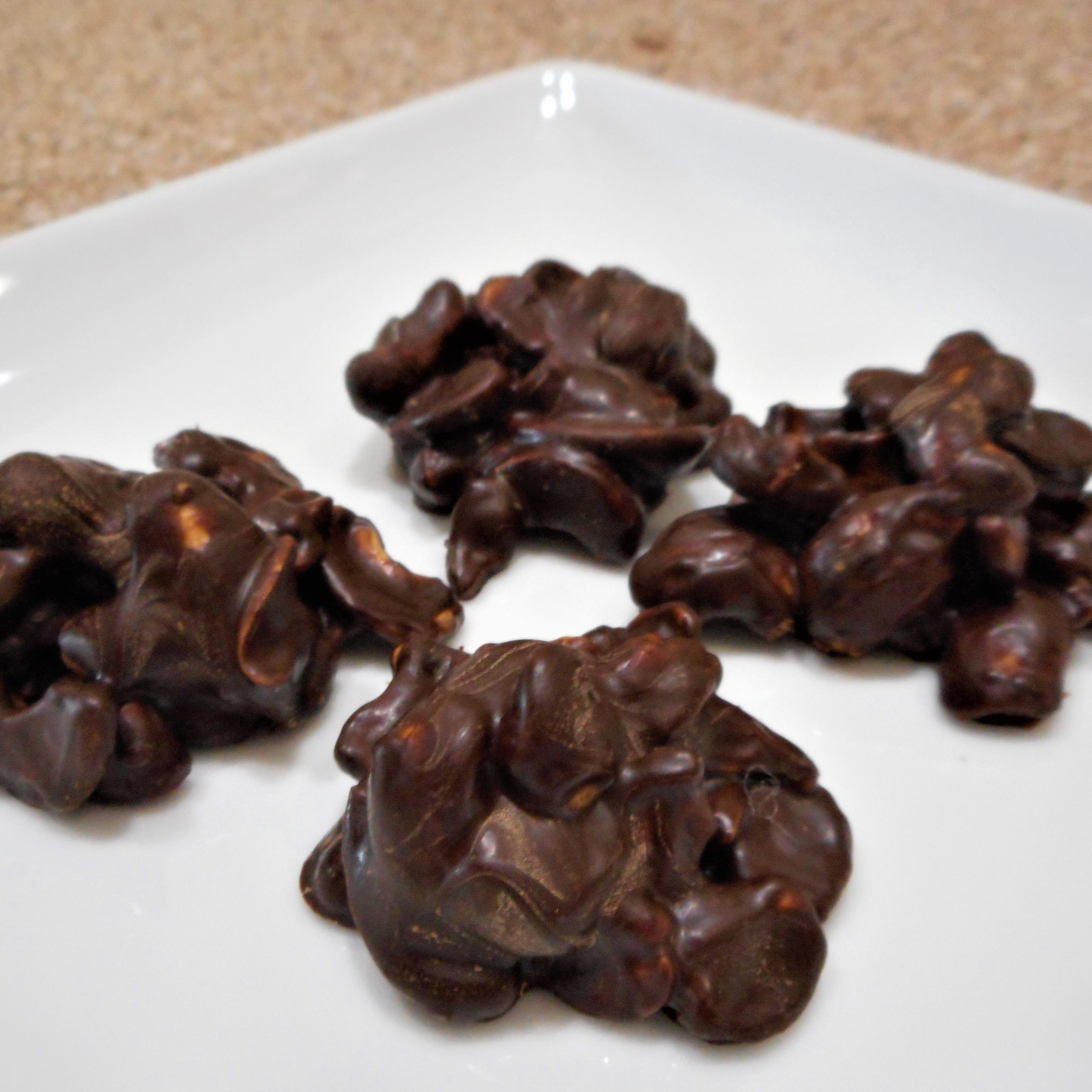 After dipping your truffles you will have leftover chocolate. What to do? Throw in any kind of nuts, stir to coat, and drop onto wax or parchment paper.
