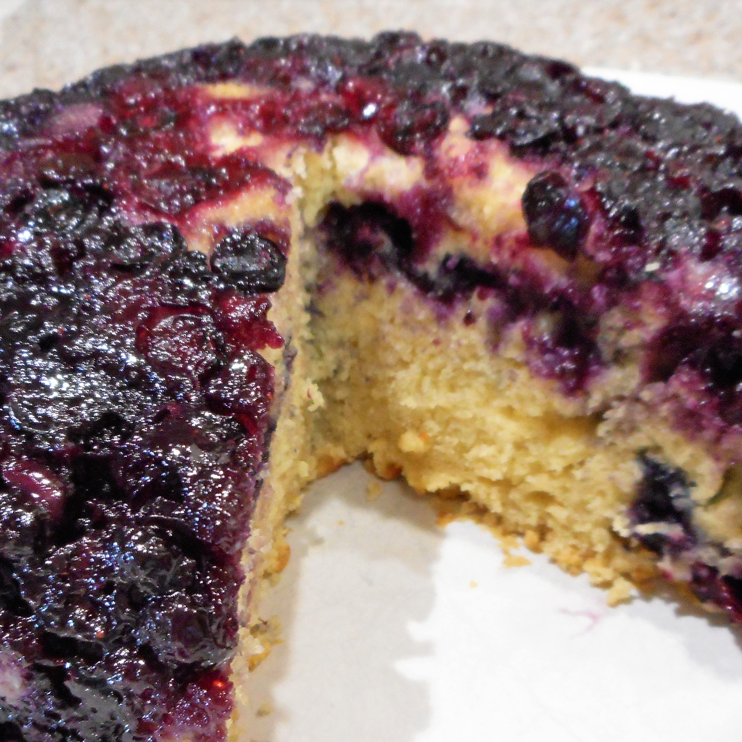 3. Pour half the batter into the cake pan. Sprinkle remaining 1/3 cup of blueberries over the batter. Spread the remaining batter over the blueberries. Bake until a cake tester inserted in the middle of the cake comes out clean of batter, about 45 minutes. Immediately unmold the cake, inverting it onto a serving dish. Serve warm with whipped cream if desired.