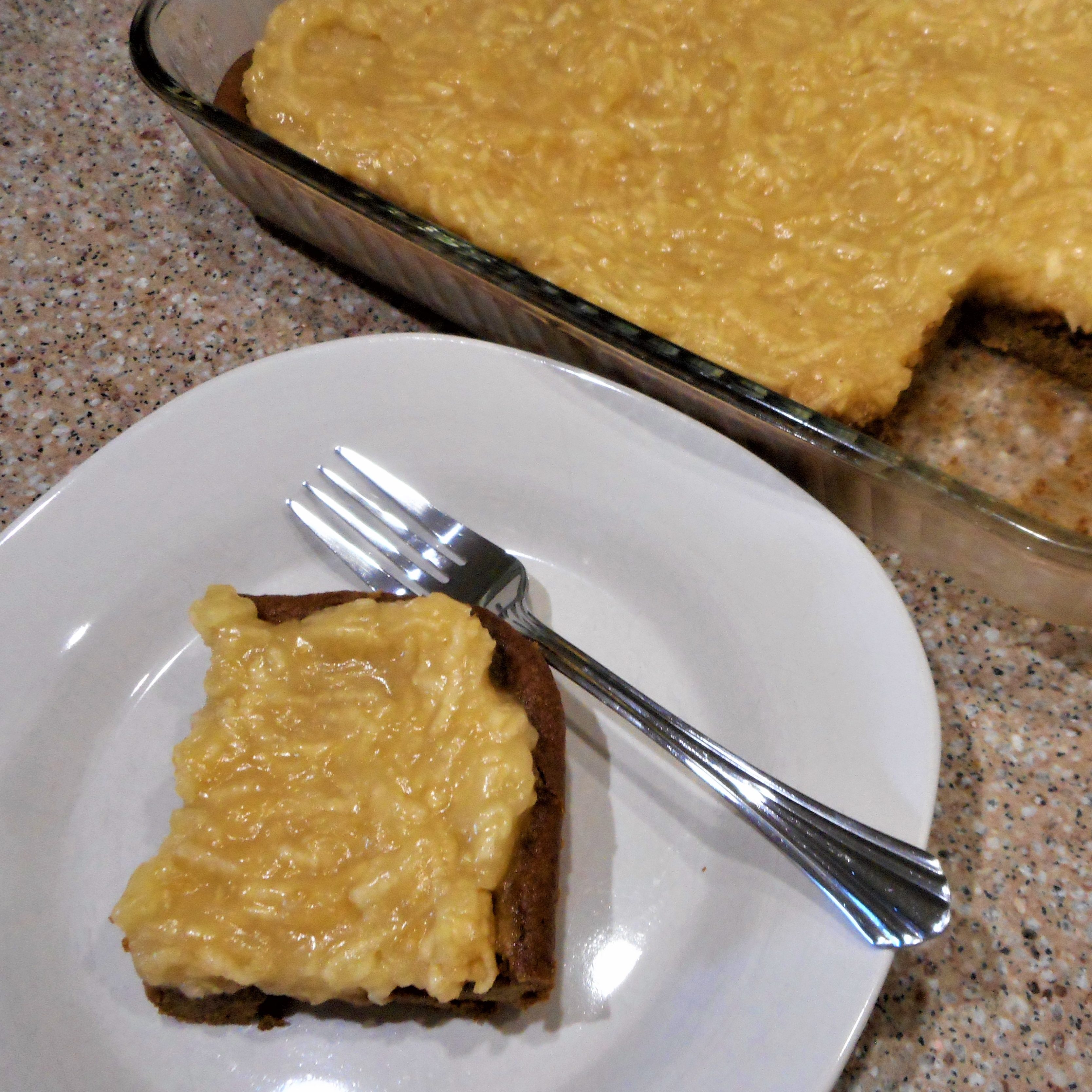 Not quite a pie, and not quite a bar cookie, this unusual dessert combines the best flavors of fall. Of course, you can enjoy it any time of year. Try topping each serving with a dollop of whipped cream.