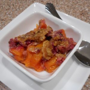 Deceptively healthy, as far as desserts go, this recipe takes advantage of fresh peaches while in season. However, feel free to substitute frozen fruit any time of the year.