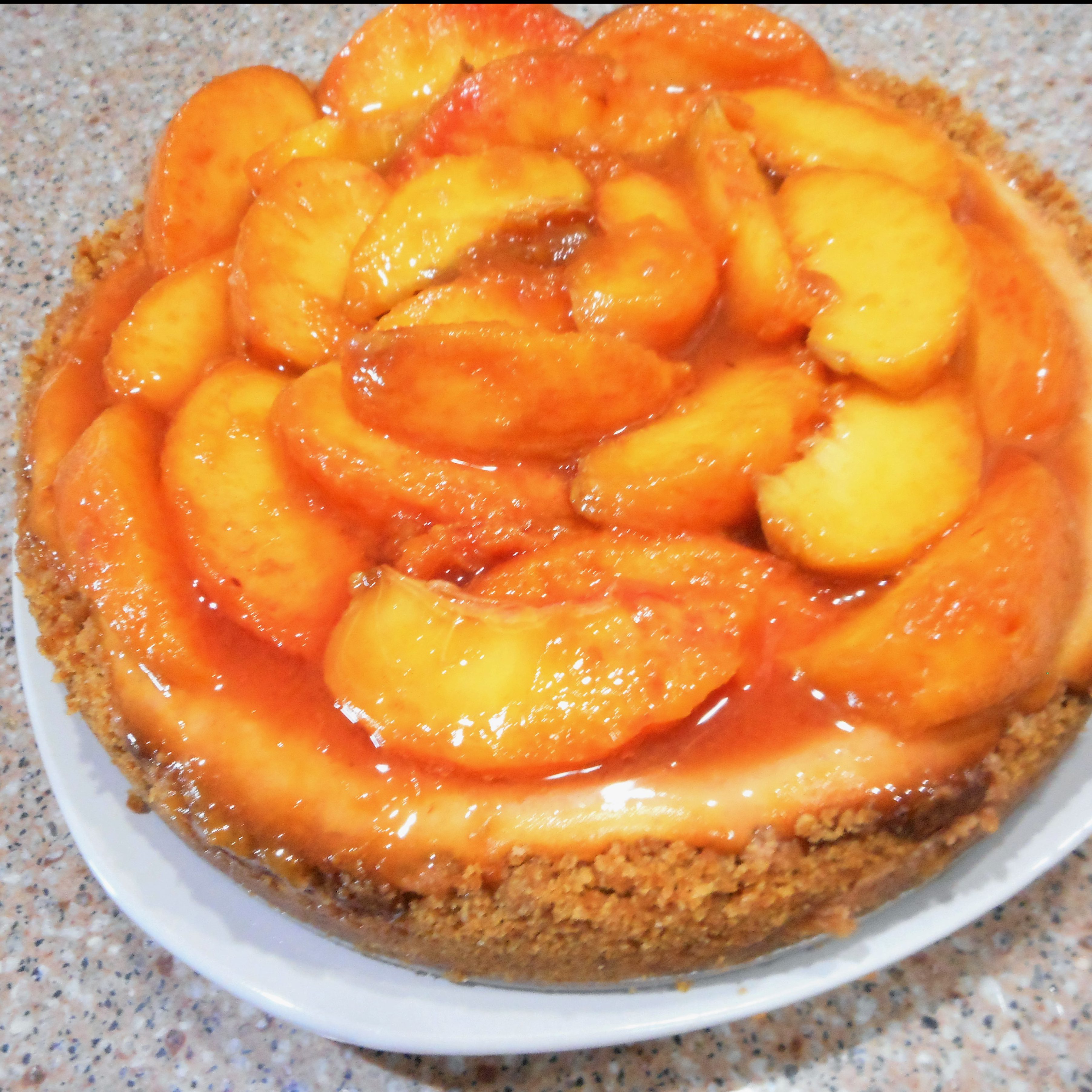 13. Place the peach preserves in a large microwave-safe bowl and microwave on high 30 seconds on high or until bubbly. stir in the schnapps and lemon juice. Add the peach wedges and toss to combine. Arrange the peach wedges over the cheesecake.