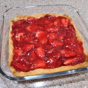This recipe using fresh strawberries is hard to resist! For a larger gathering, you may double the recipe into a 10×15″ jelly roll pan.