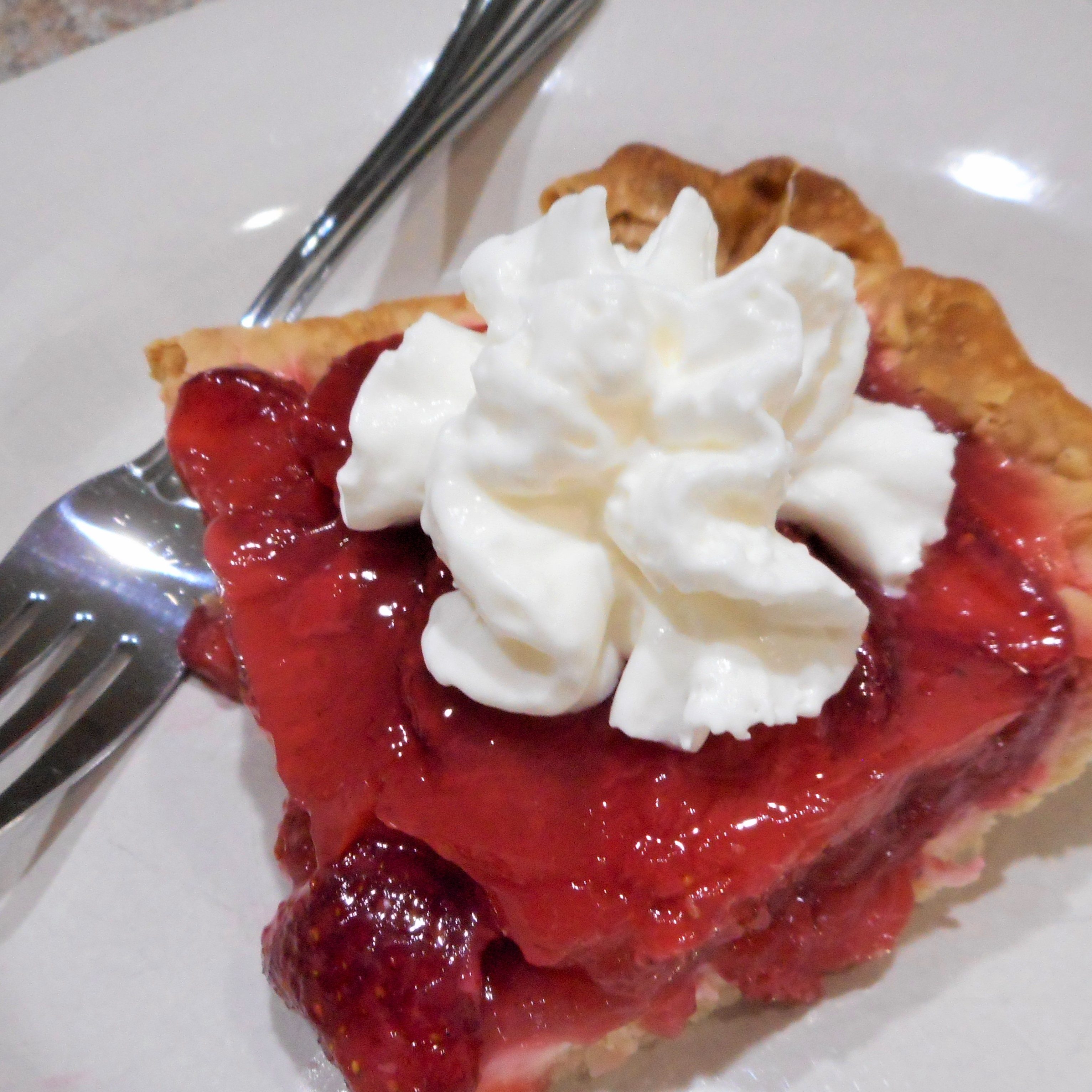 4. In small bowl, mix cream cheese and lemon peel until well blended. Spread in the bottom of the cooled baked crust. Spoon strawberry mixture into pan and spread evenly.