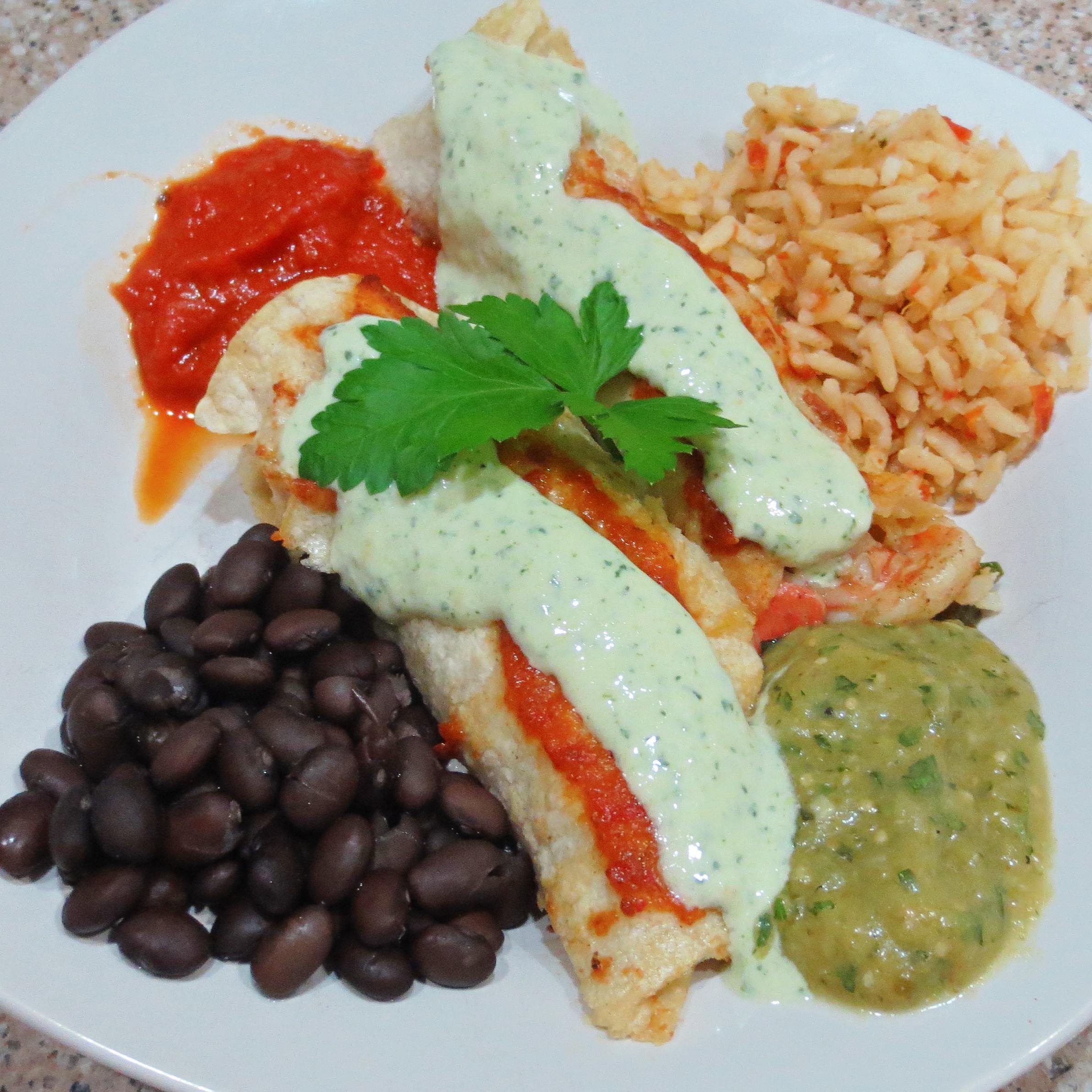 I originally intended these Seafood Enchiladas to be made with lobster and shrimp, but by the time lobster tails went on sale the store was sold out. I already had my sauces made, so I substituted imitation crab. The results were delicious!