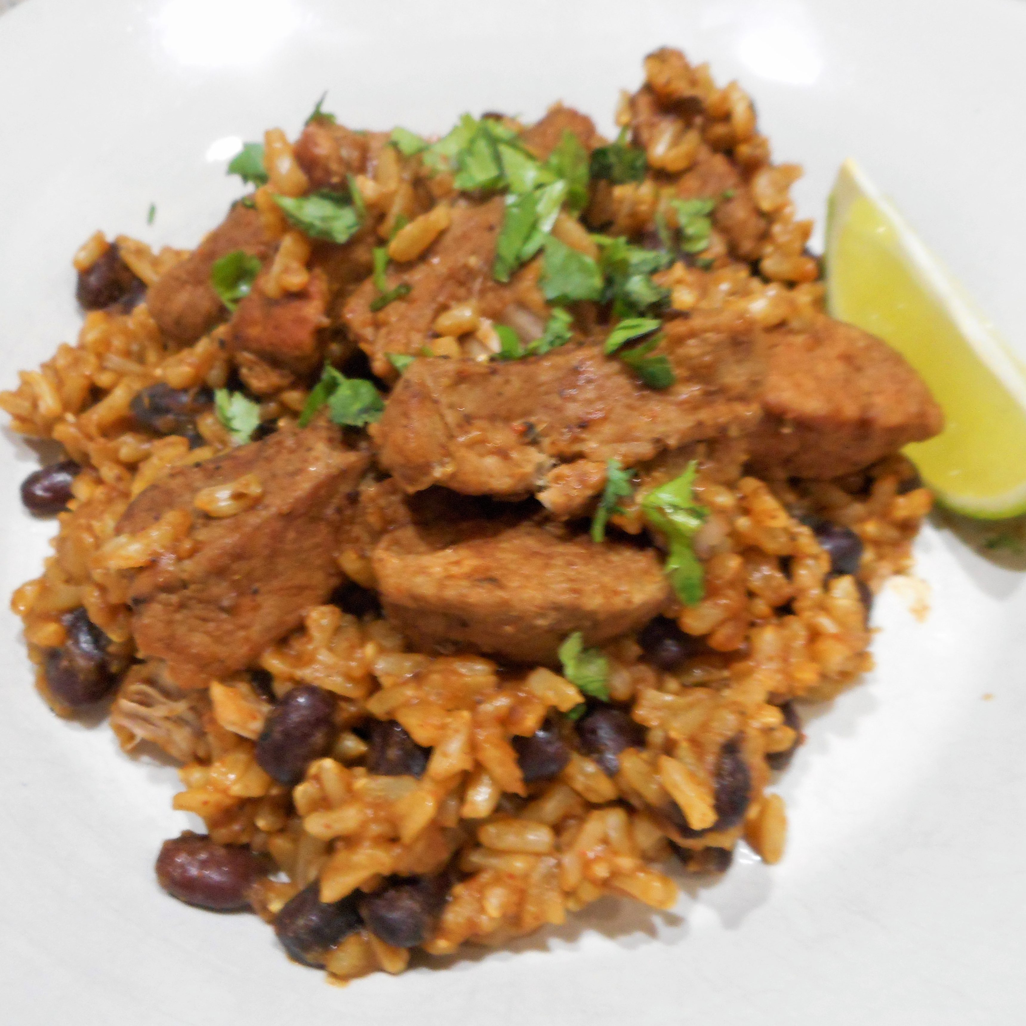 This meal in a pot features Cuban style spiced pork nestled into rice and beans. A green salad on the side would round out your dinner.
