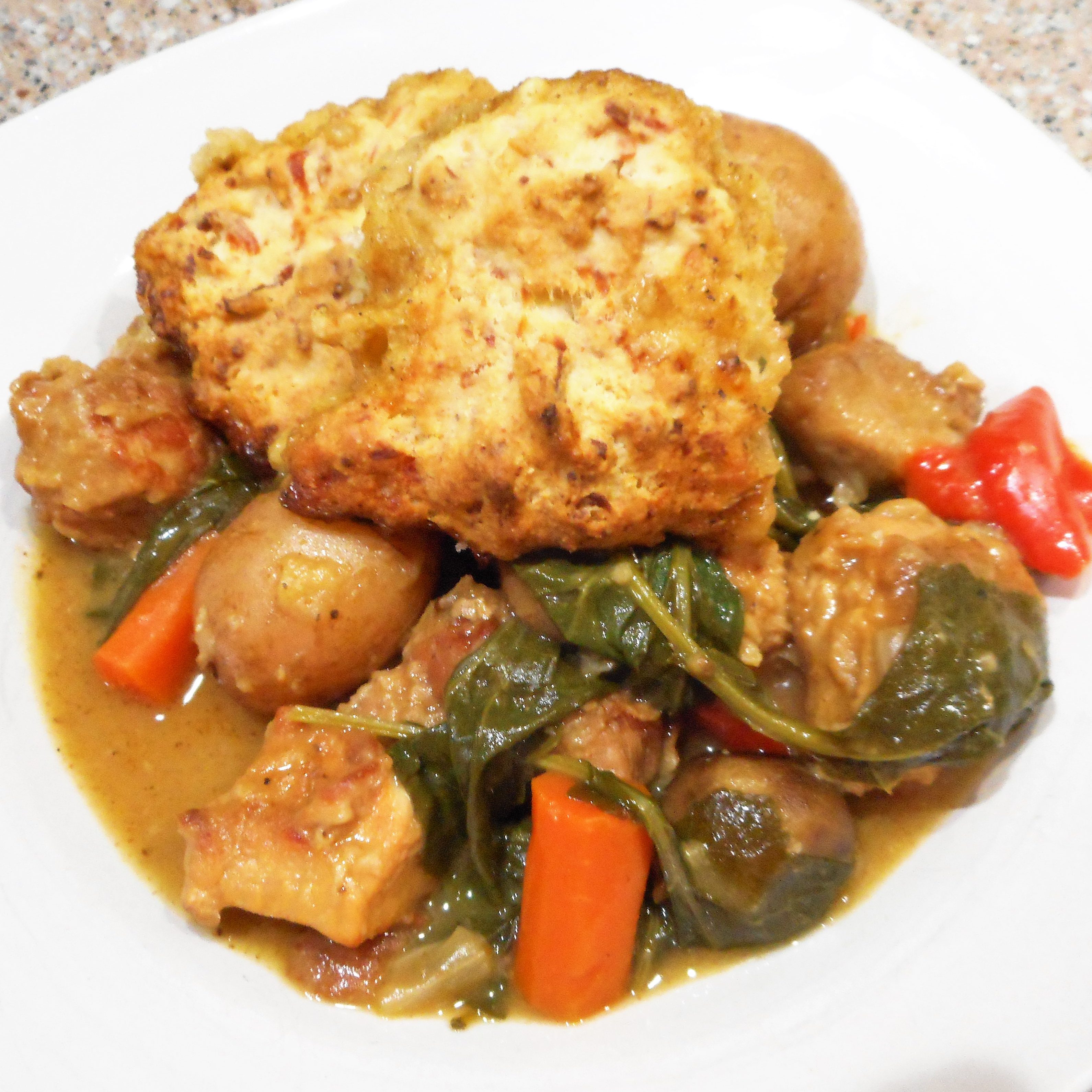 12. Bake until the biscuit topping is golden and cooked through, 20 to 30 minutes, depending on how fast your oven cooks.