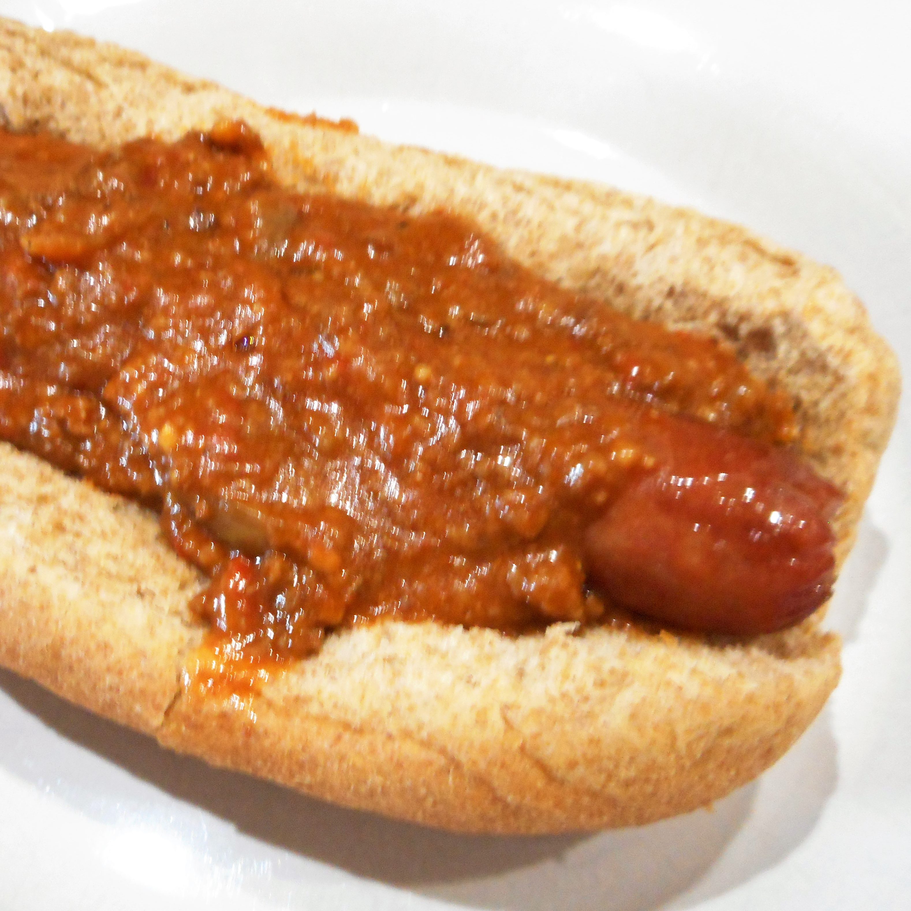 This recipe makes a very spicy hot dog chili. It is not for the faint of heart! I would suggest you start with small servings and have some mild cheese on hand to tone it down. I often add 1/2 cup of oat bran along with a little beef bouillon to the simmering sauce and cook it an extra 20 minutes or so. No one notices the oat bran in the mixture, but it adds a good bit of fiber and calms the heat down a bit.