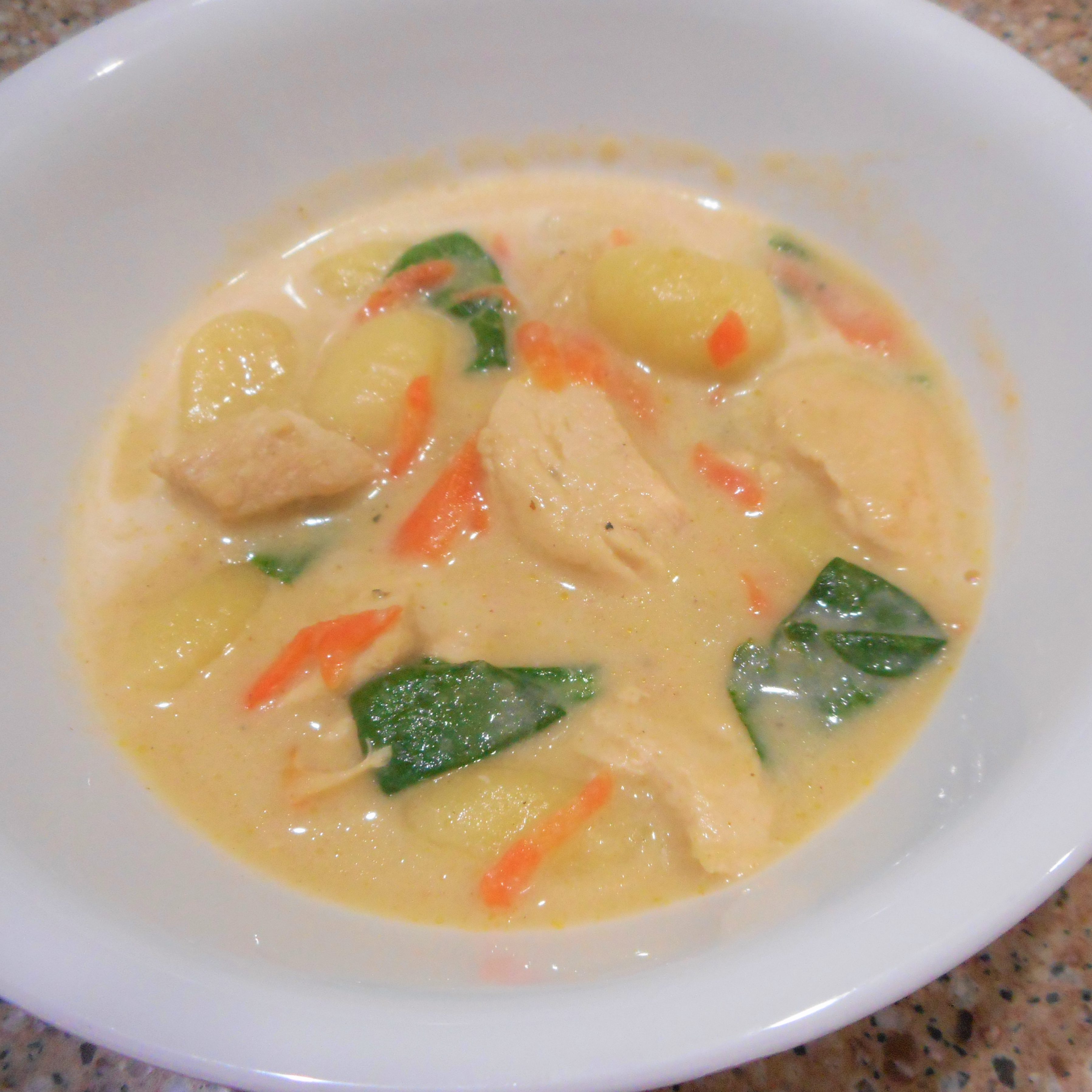 5. Add the remaining broth to the pot and bring to a boil, then add the gnocchi. Allow the gnocchi to simmer for four minutes before returning the chicken and carrots to the pot. Bring back to a boil, then stir in the spinach, reduce the heat to low and add the cream. If you prefer a creamier soup, up to an additional cup of cream may be added. Simmer gently for 10 minutes before serving.
