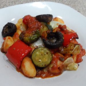 Once I start playing with new recipe concepts I have a hard time stopping. It does take a little repetitive refinement to get a new recipe just right. My second cut at Zoodles turned up as a side to one of my favorite dishes, La Marina. La Marina combines grilled chicken with shrimp in a creamy mushroom sauce. I usually serve a side of grilled veggies and some sort of rice with this entree, and I have to admit I prefer that combination. Zoodles are jut too light and don’t carry the sauce like rice does.