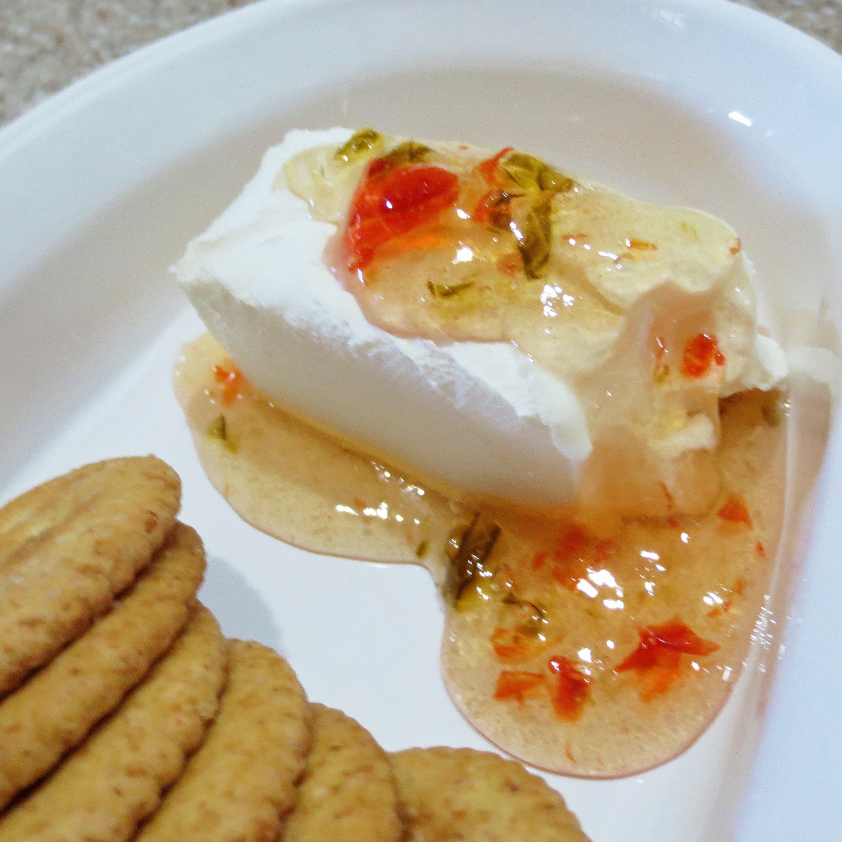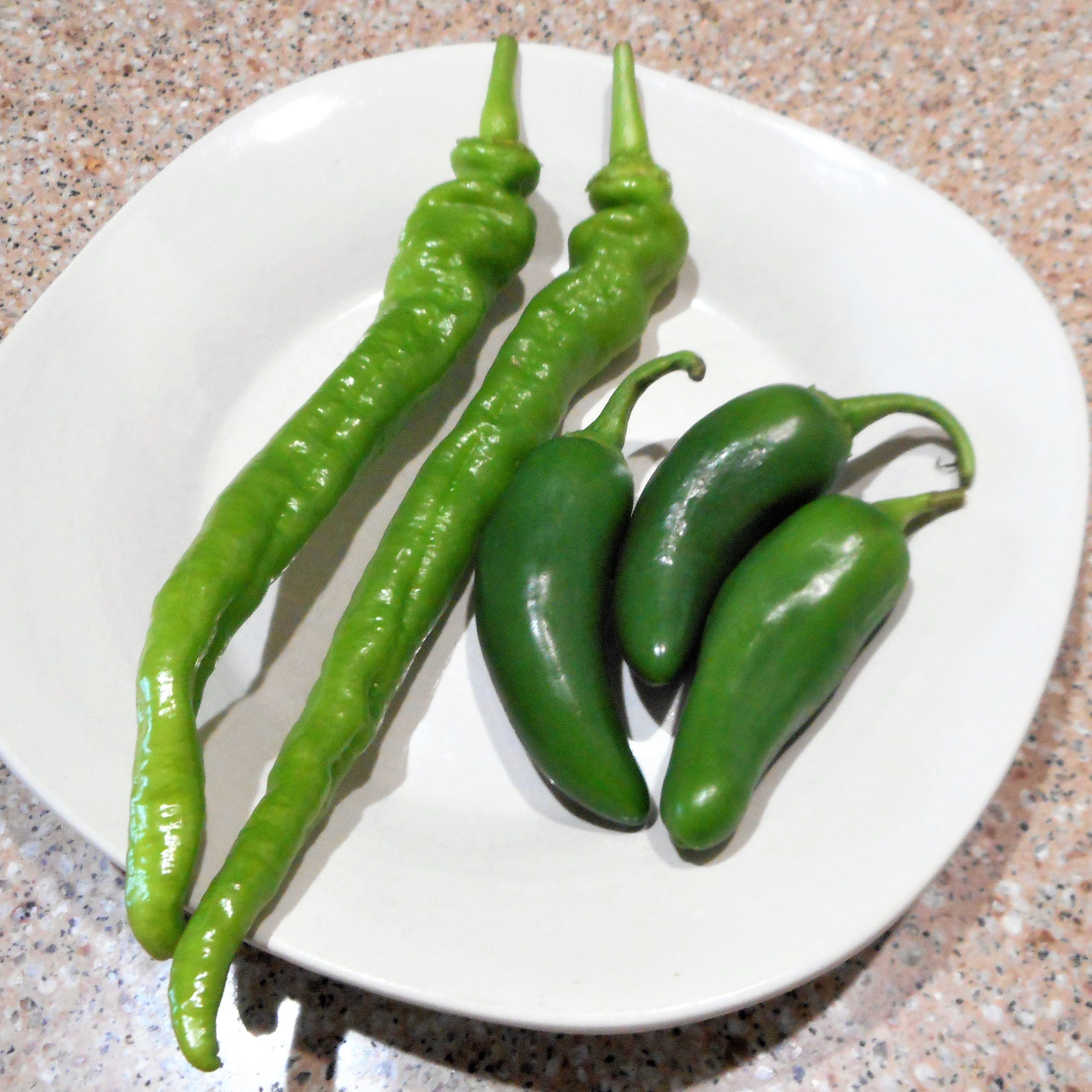 I almost forgot the peppers! We grew two kinds this year, jalapenos and cowhorns. The cowhorns are a little spicier than the jalapenos. I combined the two, added a red bell pepper for color, and made a few jars of Pepper Jelly. The pepper jelly is good served over a block of cream cheese to spread on crackers.