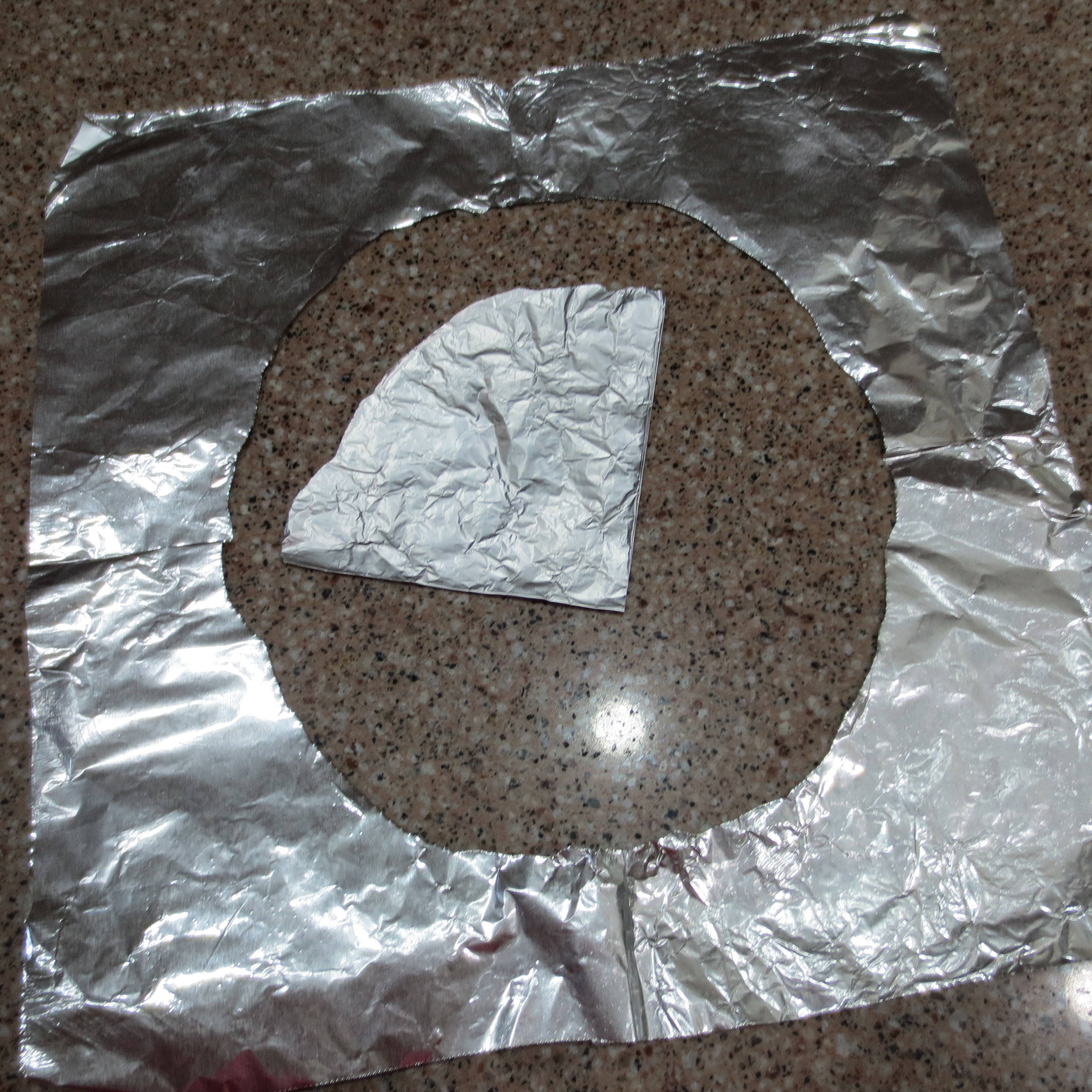 Most of the time I roll pie crusts out on a lightly floured square of aluminum foil. When I’m through I fold the foil into a square. I then tear a semi-circle from the pointed folded end. When the foil is unfolded I have a shield for the edges of the crust. This shield is much easier to position and keep in place than strips of foil and the open center allows steam to escape and the middle of the pie to brown without the edges burning.