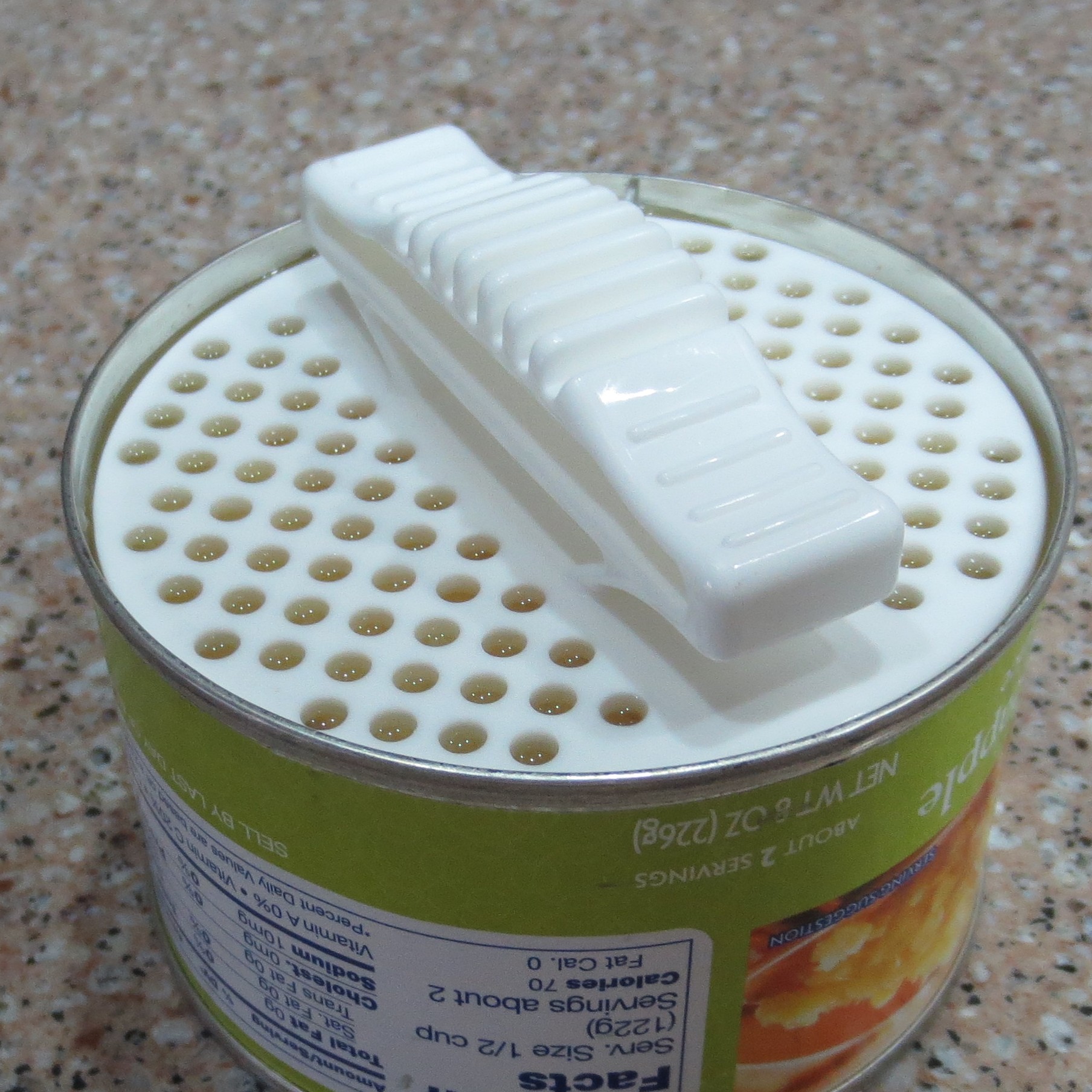 This little gadget is unbelievably helpful. It is made to strain cans of tuna, pinapple, etc. with no loss of product and little mess, and it really does work.