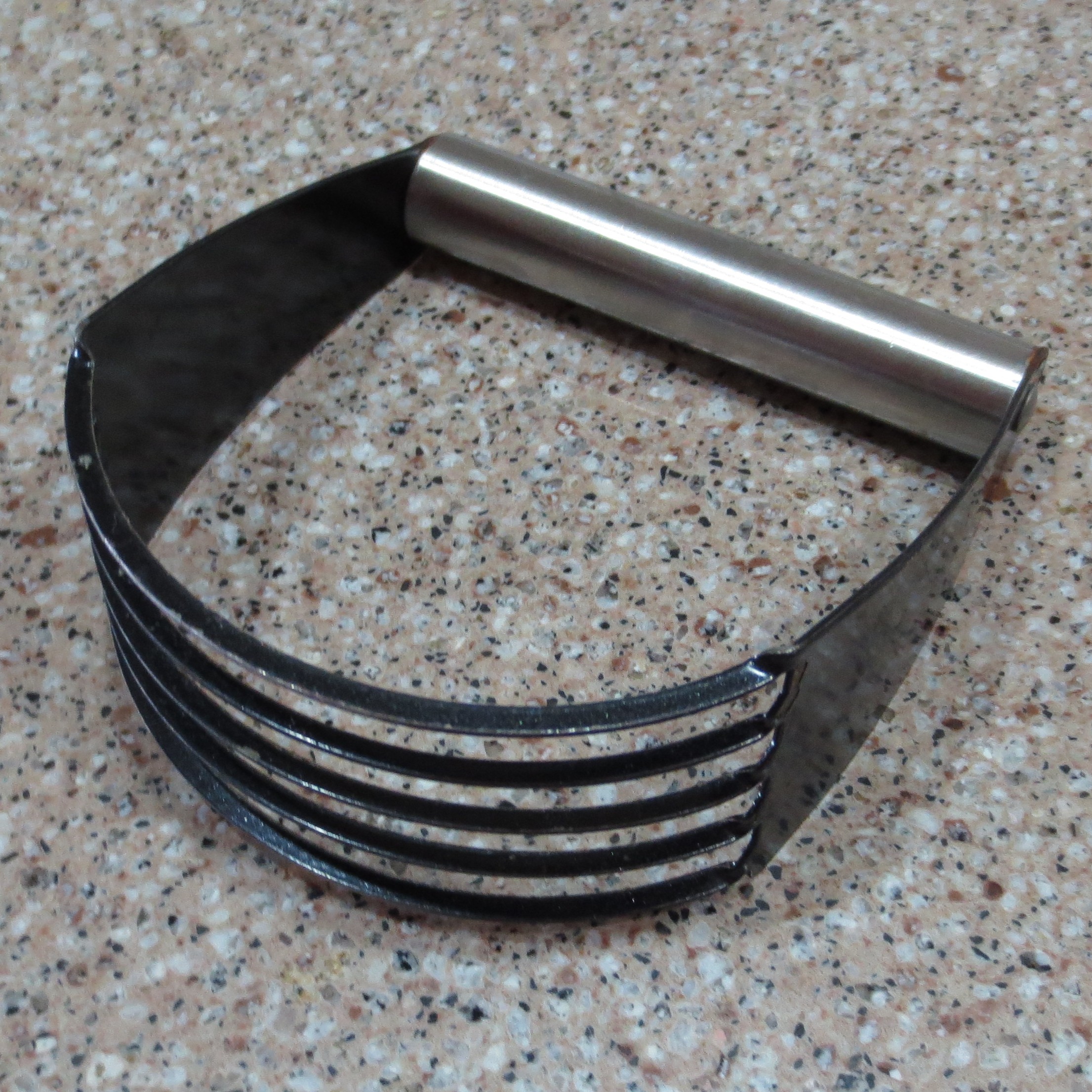 A pastry blender does exactly what it says. Use it to cut butter or shortening into the dry ingredients for pie crusts, biscuits, and other baked goods. I also use mine for other tasks, like chopping the eggs in a bowl for Egg Salad.