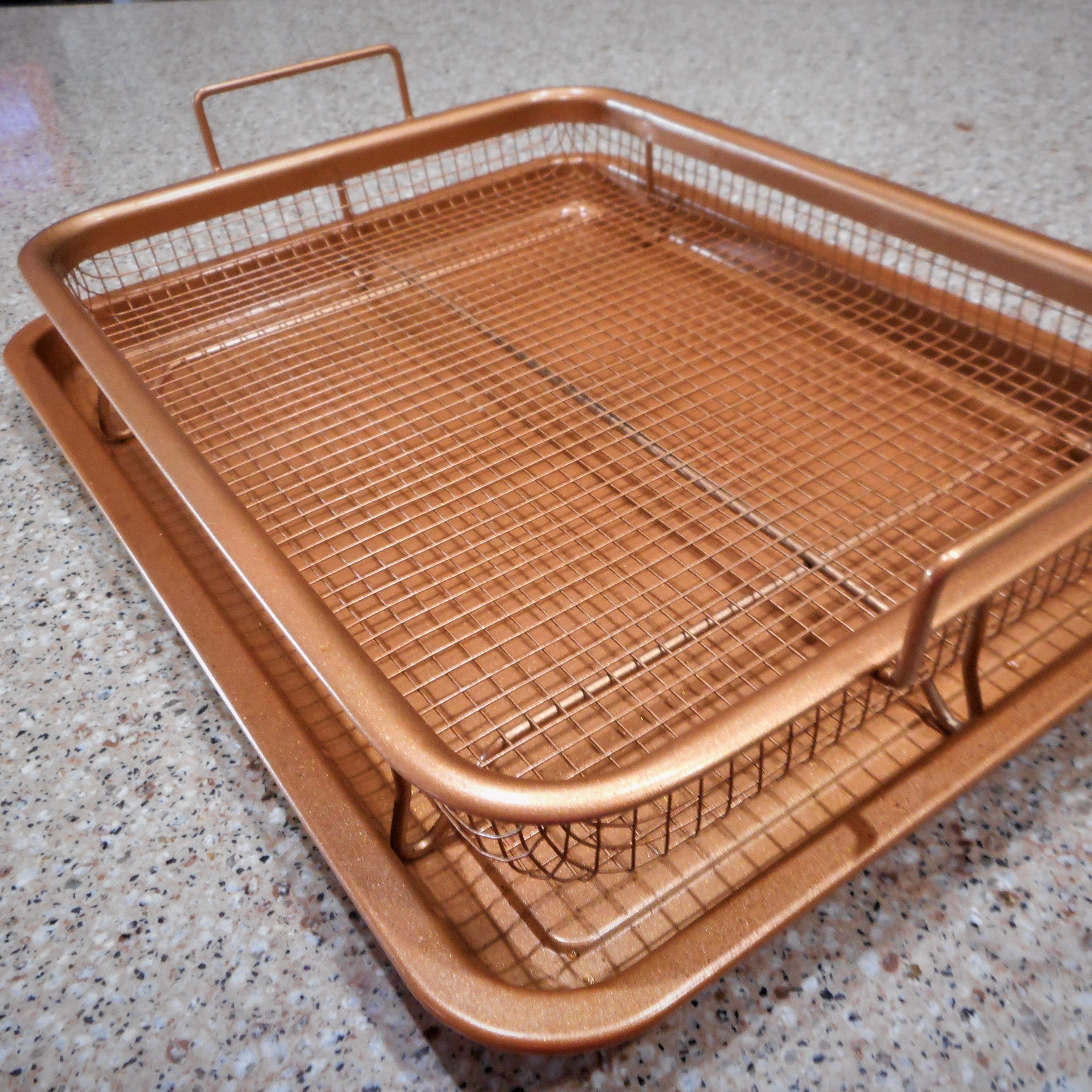 Air frying is a great concept, but why clutter your counter with yet another electric appliance when this simple basket (paired with a convection oven) will do the trick at a fraction of the cost? You can find an air frying basket in the kitchen department of most large stores for under $20.00. I think I paid $12.00 for this one. My new counter top oven even came with a basket along with the standard racks.