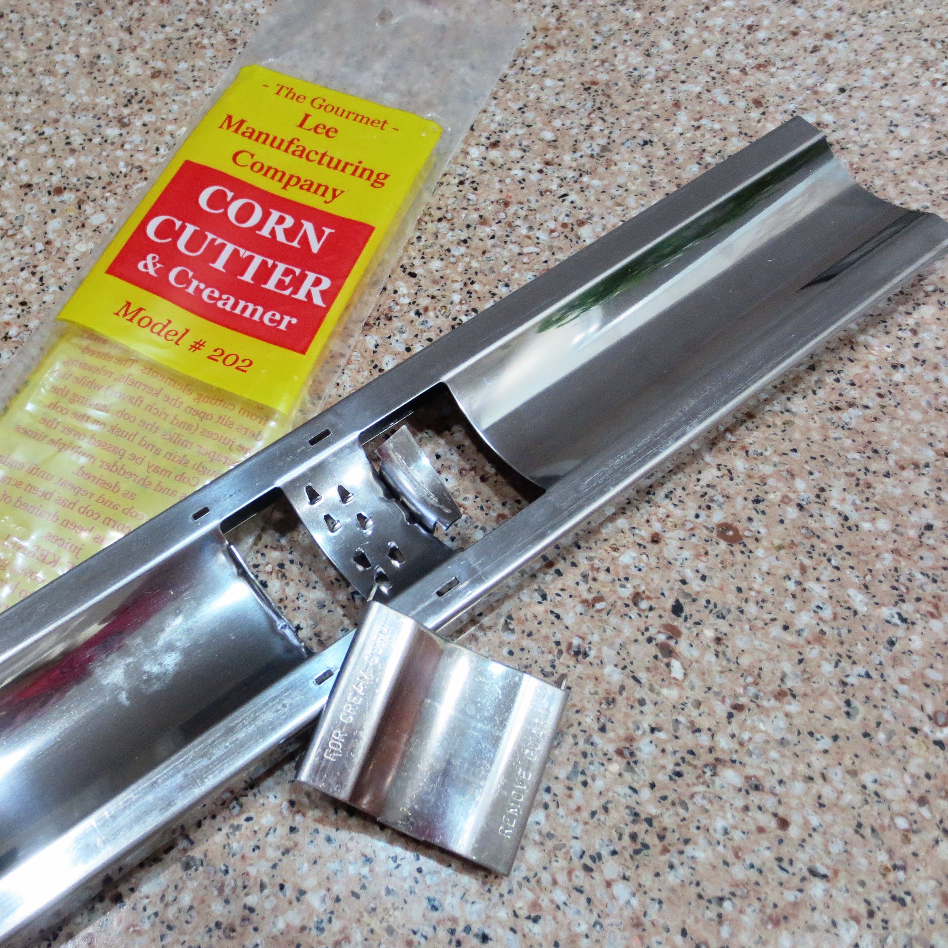 A Corn Cutter is an old fashioned tool used to make creamed corn. It can also cut whole kernel corn from the cob for freezing or canning.