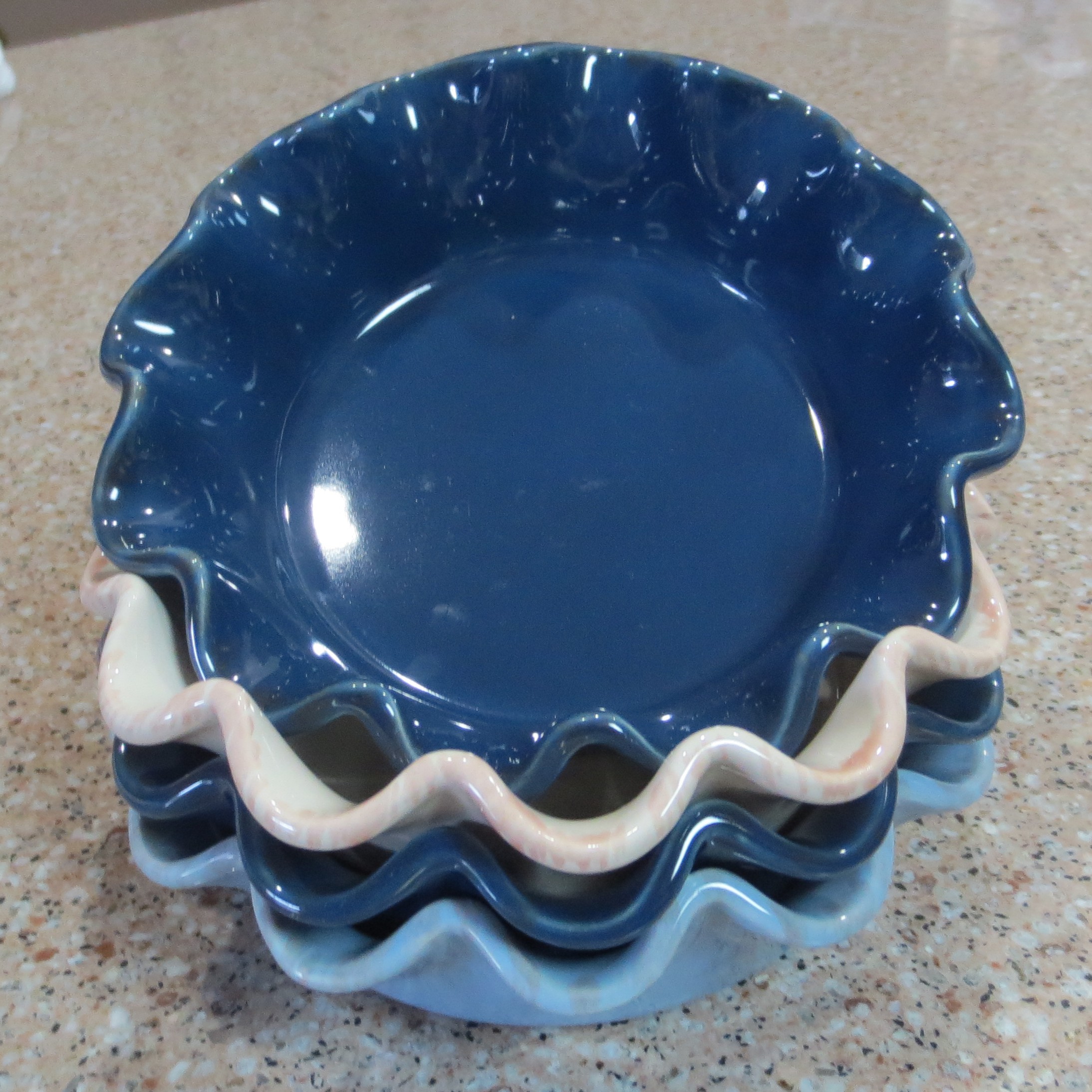 These cute little blue ones are oven, microwave, dishwasher and freezer safe. They are perfect for breaking down larger recipes, like pot pies, casseroles, or desserts, into single portions. They were a little on the pricey side, at $20.00 for four, but to me they were worth every penny.