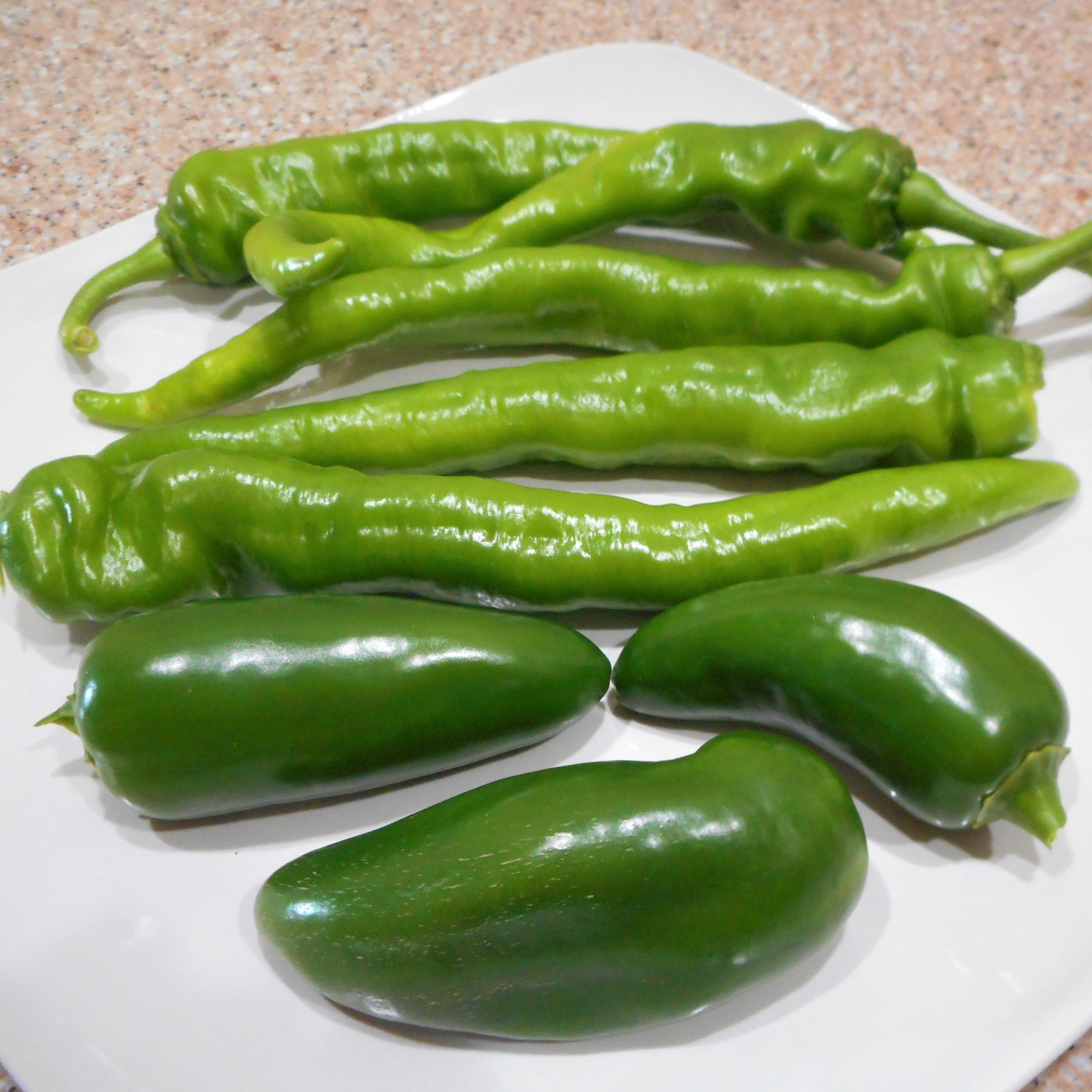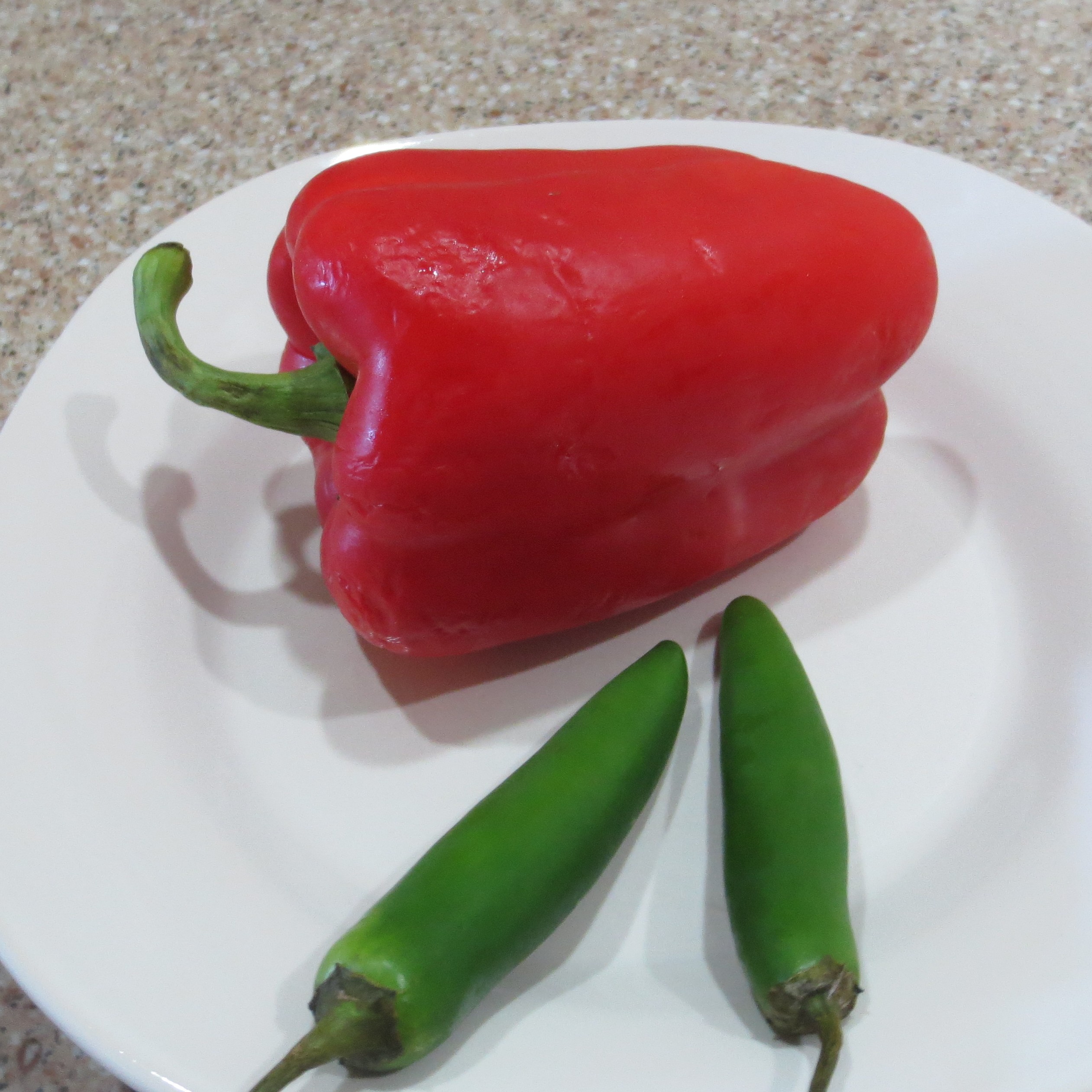 Peppers come in all shapes, sizes, and heat levels. I most often use red bell peppers when I need something mild, and serranos when I need a little heat.