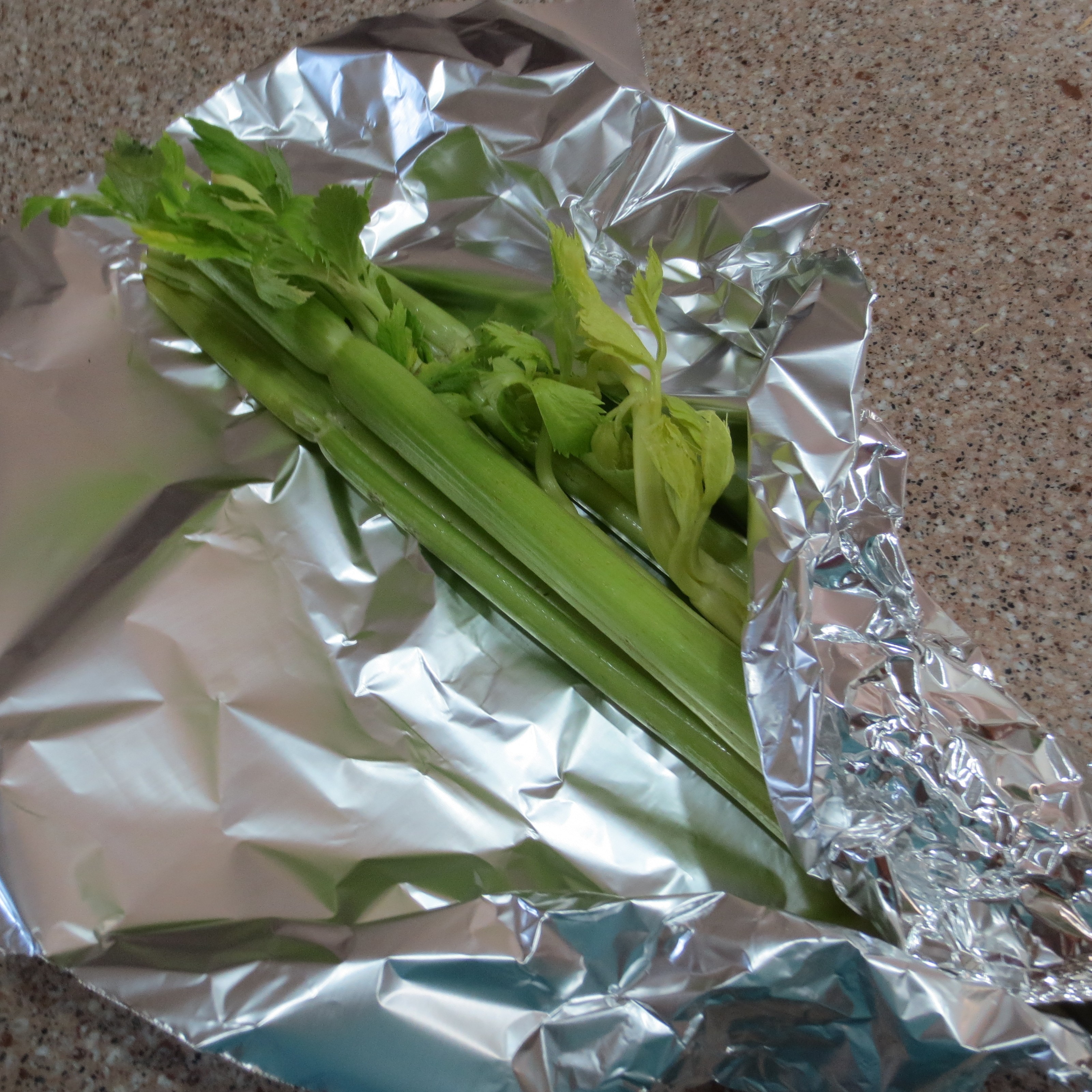 Wrapping your celery in a large sheet of aluminum foil will greatly increase its usable life. I don’t know the science behind this, but it works. Your celery will stay fresher longer.